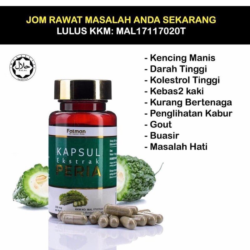 Kapsul Ekstrak Peria Katak Fatman Penawar Kencing Manis Diabetes Darah Tinggi Hypertension Kolesterol Shopee Malaysia